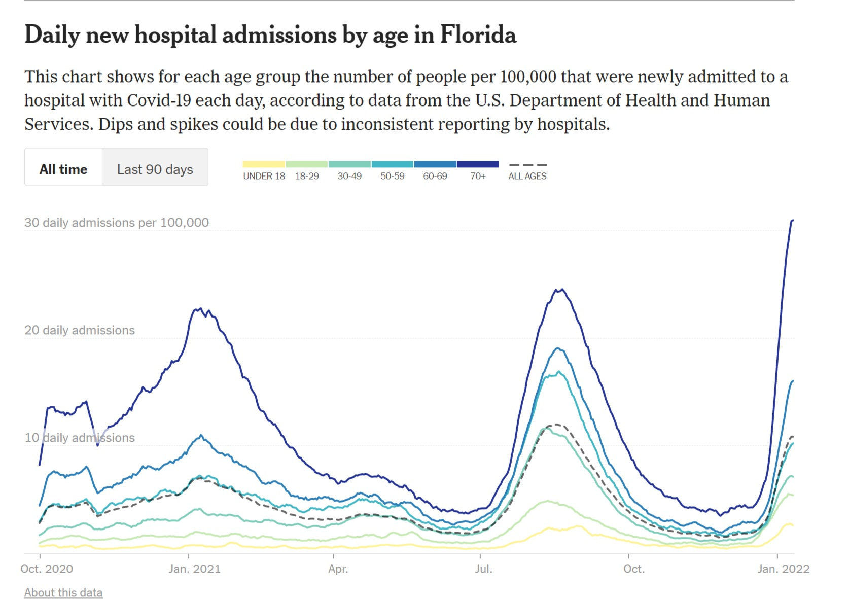FL also up ~40% on 70+ hosp despite 89% vaxx rate over 65 (same as NY, higher than CA)