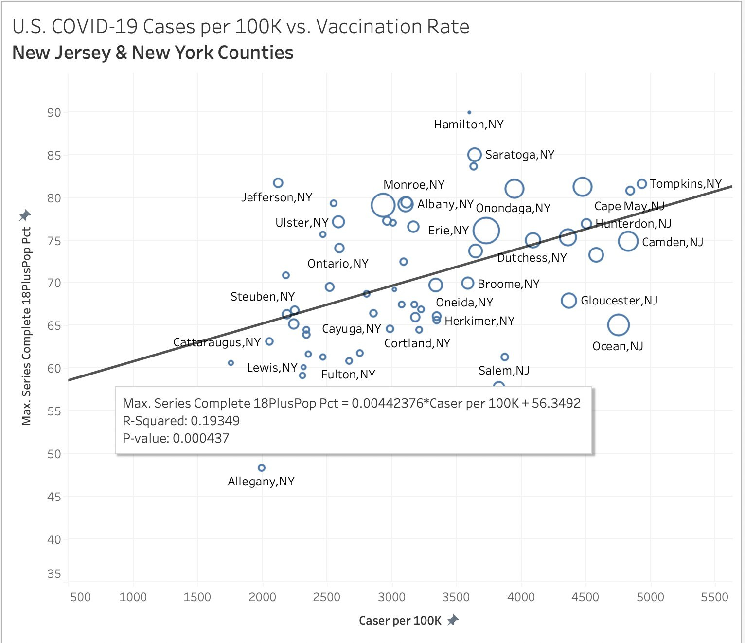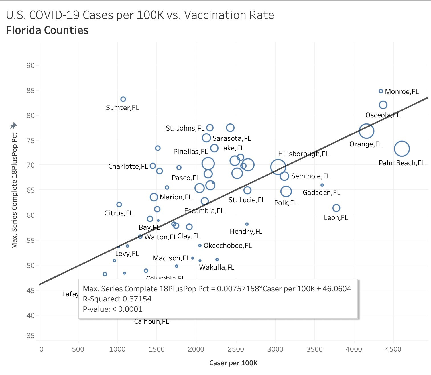 in every case, the R2 shows that more vaxx is associated with more cases per capita. this is just so prevalent in ALL the data and he’s using “double vaxxed” as the definition and that mostly reached near peak in these places long before now, so this does not look like “people running out to get vaxxed" because of cases.” that might drive boosters, but not double vaxx counts. (note that in a system this multifactorial, these R2’s are quite high)