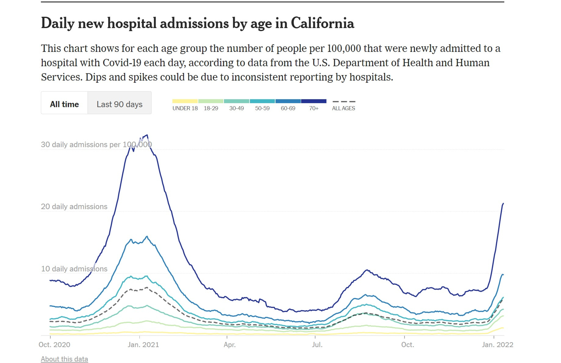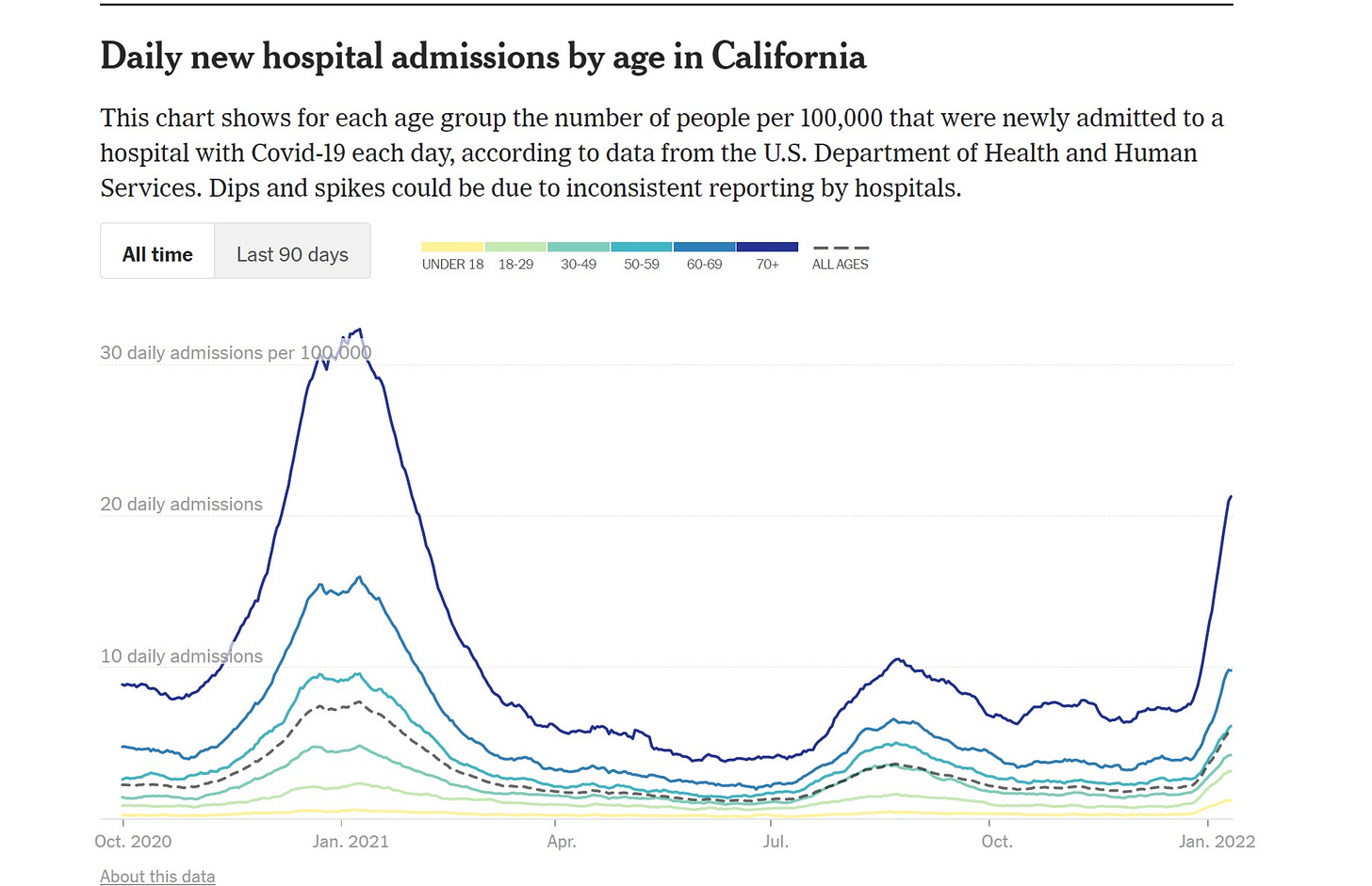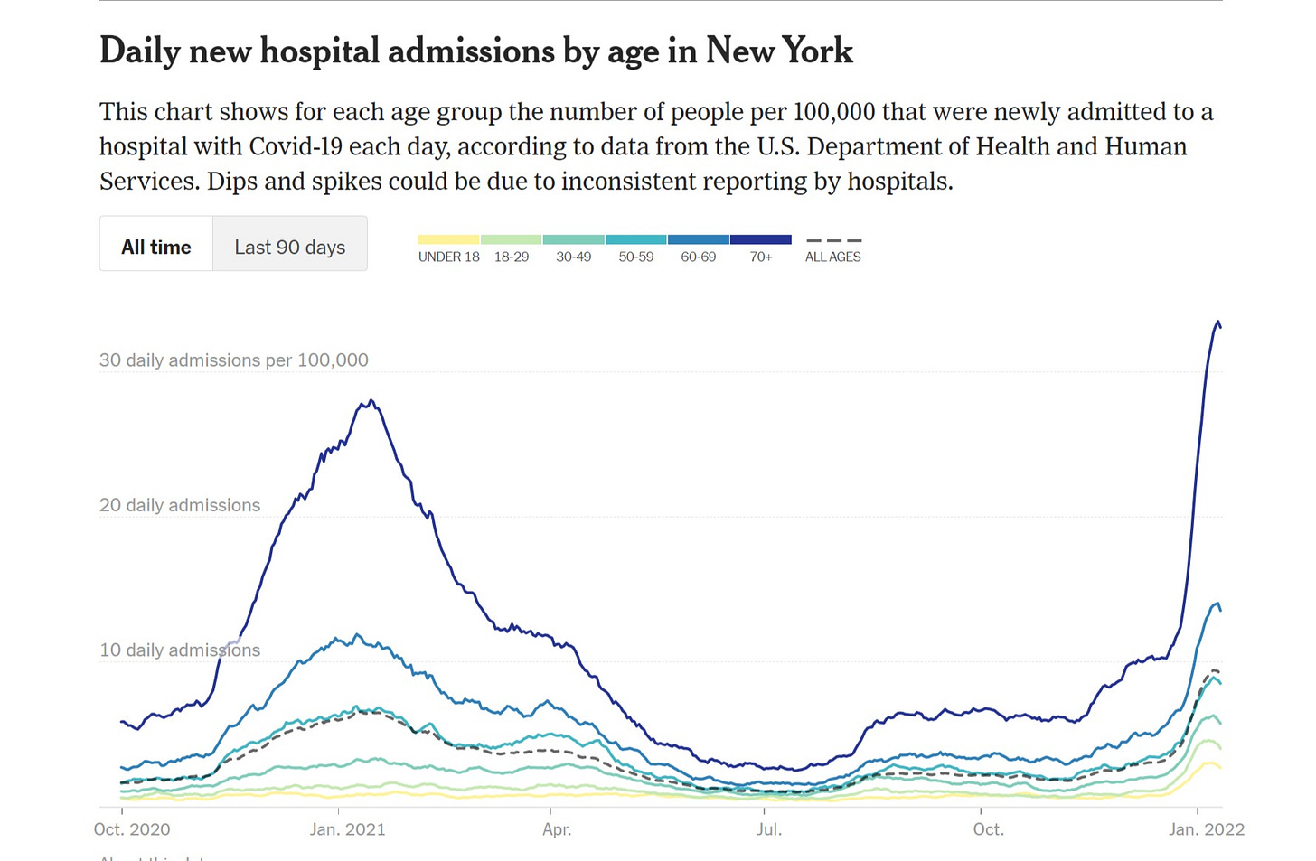 there is just ZERO here to make it looks like vaccines are working to mitigate hospital counts. if 90%+ vaxxed in your demo does not even show up, despite a milder variant and far more acquired immunity, well, i’m struggling to see how this looks like “vaccines worked on severity.” there is no way the unvaxxed are driving that.